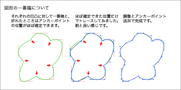 形が歪んだり、必要以上にアンカーポイントが増えることもありますが、2つの利点を考えると、意外と速く正確にトレースできますので、お試し下さい。
