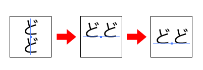 縦組みを横組みにすると位置がやや上に移動するため(上図中央参照)、スクリプトの機能で少し下に移動(上図右側参照)させています。逆に横組みを縦組みにした時は少し上に移動させています。移動の量は文字の大きさを基準にしています。 ※(2)の移動が不要であれば、スクリプトをテキストエディタで開き、一行目の |